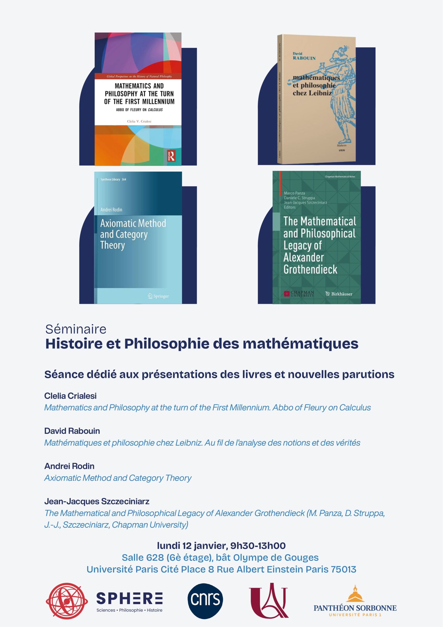 Séminaire d’histoire et philosophie des mathématiques — Nouvelles parutions
