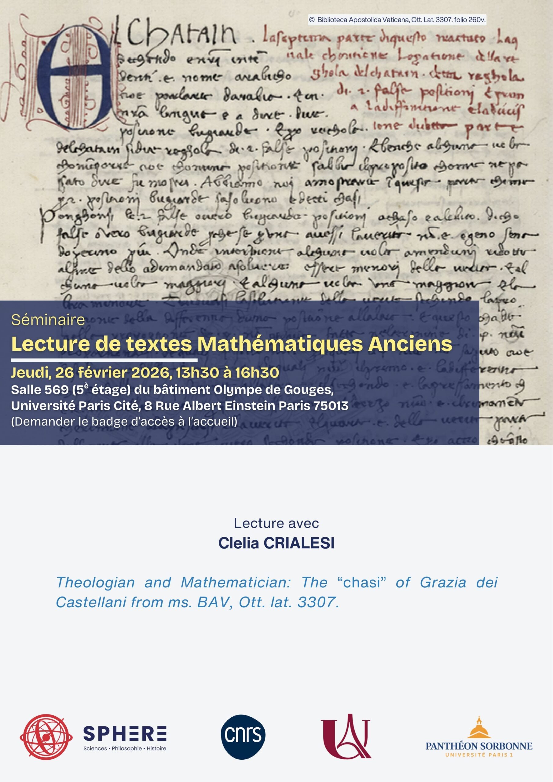 CNRS-SPHERE 8 Rue Albert Einstein, Paris, FranceProgram